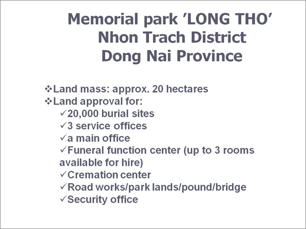 THÔNG TIN DỰ ÁN NGHĨA TRANG CAO CẤP LONG THỌ