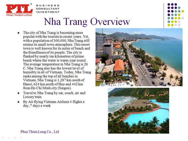 Khánh Hòa có một đường ven biển dài 385km với 200 hòn đảo lớn nhỏ. Vẻ đẹp và cảnh đẹp tự nhiên này đã được công nhận trên toàn thế giới, được biết đến do sự phong phú của sinh vật biển. Không gian thanh bình và yên tĩnh làm cho nơi đây trở thành một nơi lý tưởng cho sự phát triển khu du lịch và những biệt thự, nhà nghỉ mát, khách sạn cao cấp đối diện mặt bờ biển riêng biệt này. Hòa mình với những khu du lịch cao cấp của Nha Trang, công ty Phúc Thiên Long đã và đang xây dựng dự án Thiên Đường Omega - một dự án hướng đến một thiên đường du lịch biển đẳng cấp quốc tế tại Nha Trang.