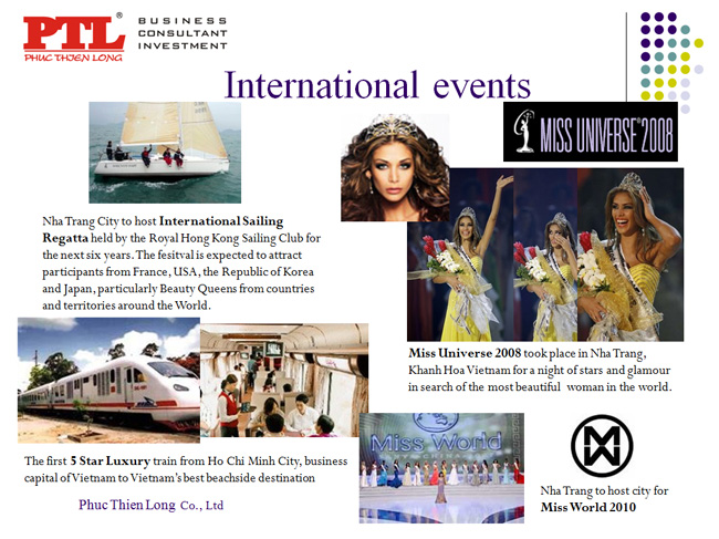 Các bãi biển đẹp đã biến Nha Trang thành một danh lam thắng cảnh. Nơi đây cũng được biết đến như một địa điểm lý tưởng để tổ chức các sự kiện lớn như Festival Biển (Nha Trang), hay các cuộc thi sắc đẹp lớn như Hoa hậu Việt Nam, Hoa hậu Thế giới người Việt 2007 , Hoa hậu Hoàn vũ 2008, Hoa hậu Trái đất 2010 Hoa hậu Thế giới 2010...